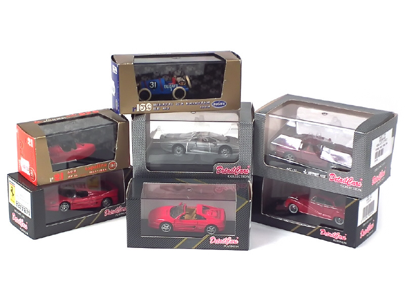 comprend : BUGATTI, FIAT, FERRARI (3 exemplaires différents), JAGUAR & BMW - on y retrouve les marques : BRUMM & DETAILCARS - on y joint 4 boîtes vides (BEST MODEL (2 exemplaires différents), BRUMM & PROGETO K)