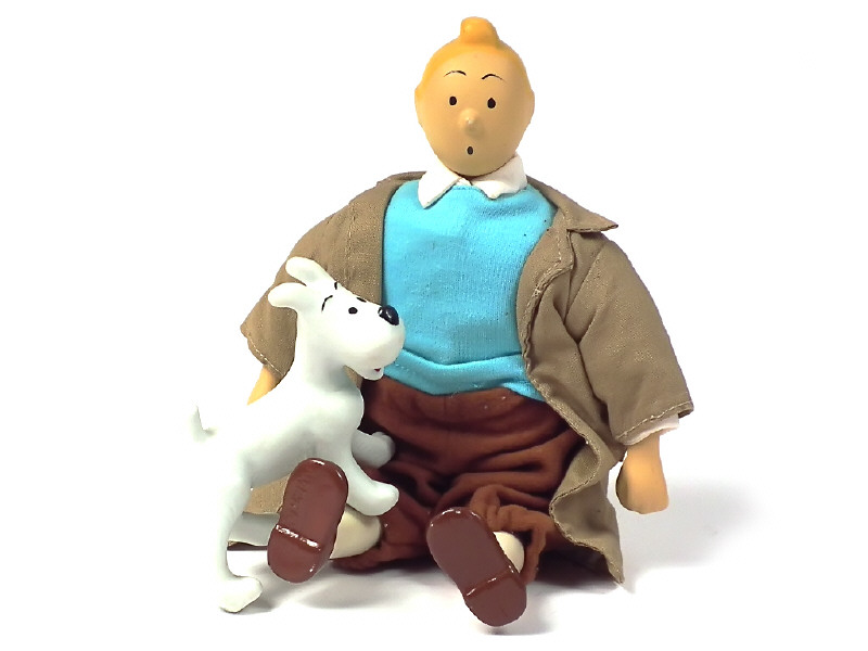 poupées en biscuit peint à la main avec vêtements en tissu - copyright HERGE - hauteur de TINTIN 25 cm - MILOU 8,5 cm - figurines distribuées lors d'une opération spéciale dans une chaîne de supermarchés - quelques petits éclats par endroits