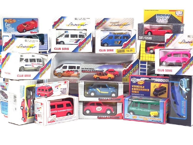 miniatures reproduisant notamment les modèles : MERCEDES, BUGATTI, BMW, VOLKSWAGEN & VOLVO - on y retrouve notamment les marques : MAISTO, MGM, FREE AND EASY, ROAD MONSTER, EURO PLAY & HOLLY CAR - 6 véhicules, 2 remorques & 2 bateaux dans 3 coffrets - 3 modèles sans boîtes