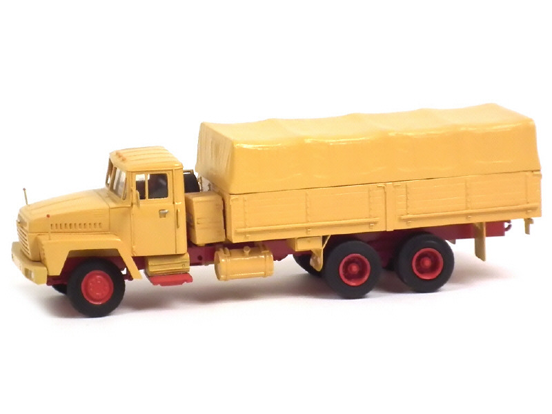 A.T.M. (FRANCE) KRAZ 251 3 essieux plateau à ridelle bâché jaune & rouge