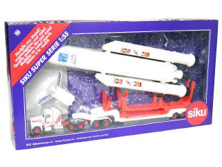 SIKU (ALLEMAGNE) 4212 PETERBILT avec semi surbaissée transportant une navette spatiale blanc & rouge
