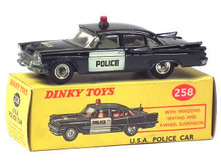 DINKY TOYS (GB) 258 DODGE ROYAL Sedan 'USA POLICE CAR' noir & blanc