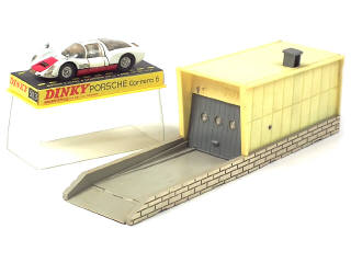 manque pneu, fixation de socle, feux & attaches de capot-moteur - on y joint un garage-box en état 'C' avec 4 importantes parties fondues sur la rampe & traces de colle sur l'avant (un numéro manquant)
