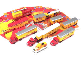 ALTAYA (ESPAGNE) Ensemble de 9 véhicules & 4 remorques PINDER roue, jaune & gris métal
