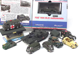 DIVERS (ITALIE) Ensemble de 10 véhicules militaires & une remorque