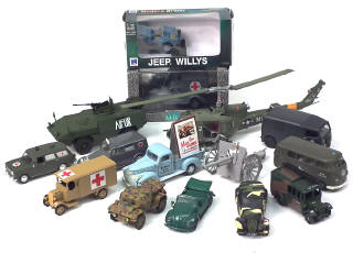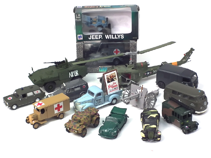 DIVERS Ensemble de 18 véhicules, 3 remorques & un canon