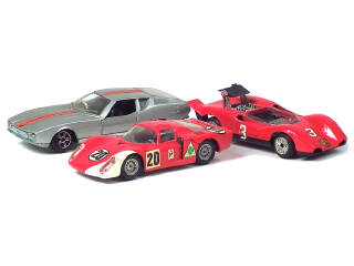série 'EXPORT' - comprend : ABARTH 3000, ALFA ROMEO 33 & JAGUAR PIRANA BERTONE - 2 véhicules plus ou moins retouchés