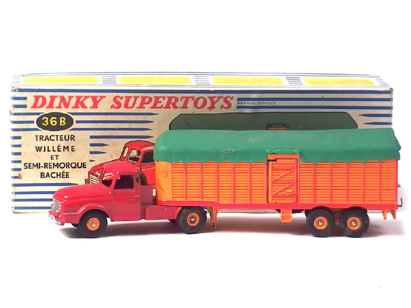 DINKY TOYS (FRANCE) 36B WILLEME Semi-remorque bâché (version avec jantes convexes) rouge & orange, bâche verte