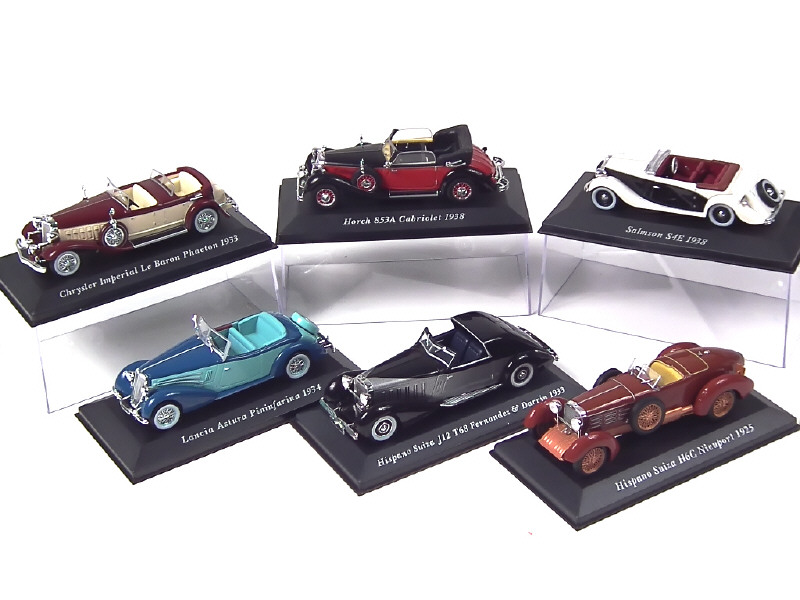 modèles vendus en kiosque - comprend : HISPANO-SUIZA (2 exemplaires différents), LANCIA ASTURA 1934, SALMSON S4E 1938, HORCH 853 A 1938 & CHRYSLER IMPERIAL 1933