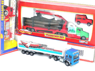 MAJORETTE (FRANCE) Ensemble de 3 camions, 2 remorques & une voiture