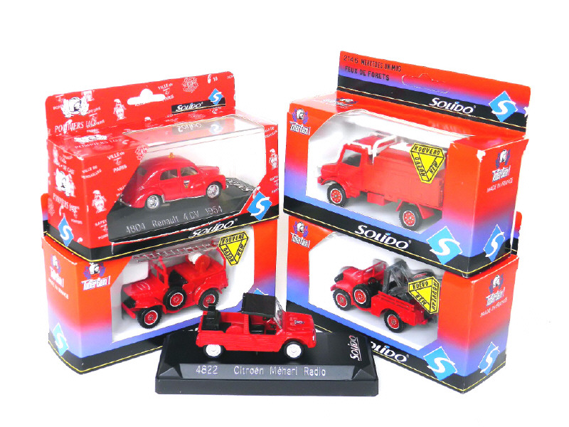 SOLIDO (FRANCE) Ensemble de 5 véhicules de pompiers rouge