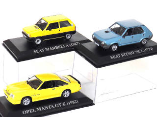 miniatures reproduisant les modèles : OPEL MANTA GTE coupé 1982, SEAT RITMO 75CL 1979 & SEAT MARBELLA 1987 - une boîte état 'b'