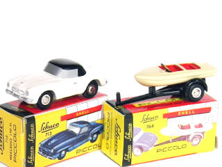 SCHUCO (ALLEMAGNE) 1931 Ensemble MERCEDES 190 SL & hors bord sur remorque