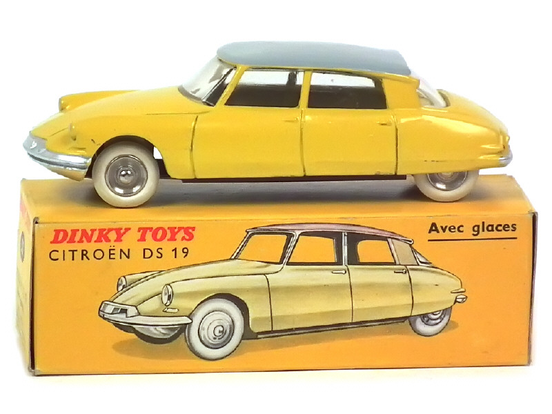 DINKY TOYS (FRANCE) 522 CITROËN DS 19 (version avec vitres & jantes concaves) jaune citron, toit gris clair