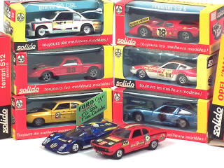 comprend : OPEL MANTA (pare-chocs manquants, boîte en état 'c'), FERRARI 512M (blister de boîte décollé), DAYTONA (blister de boîte déchiré), 512S, MASERATI INDY (boîte en état 'c'), FORD CAPRI, MERCEDES C111 (état 'A-') & BWM 30 CSL (boîte déformée) - nombreux décalques ajoutés