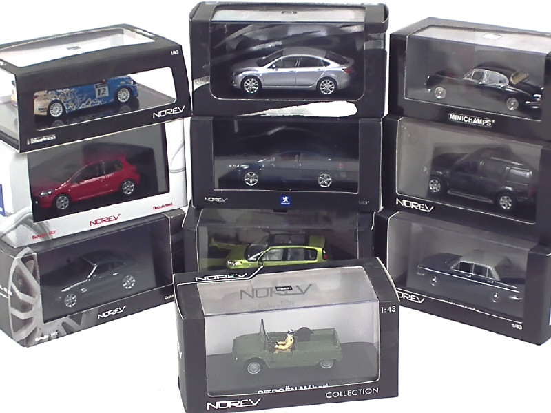 miniatures reproduisant les modèles : CHEVROLET (boîte en état 'c'), CHRYSLER, CITROEN (2 exemplaires différents), DKW, JAGUAR, MAZDA, NISSAN & PEUGEOT (2 exemplaires différents)