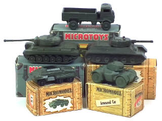 petile échelle - comprend notamment : char P34 (état 'C.c'), M26 PERSHING (état 'D' avec boîte non conforme), COMBAT-CAR, DAIMLER & BEDFORD QL camion-plateau à ridelles - on y retrouve les marques : MICROTOY & MICROMODEL