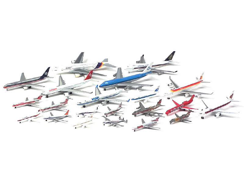 états de 'b' à 'd' - on y retrouve notamment les compagnies : KLM, SWISSAIR, SINGAPOR AIRLINES, AEROMEXICO, VASP & STERLING - petits manques - carrosseries encrassées - comprend les marques : SCHABAK & SCHUCO