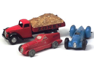 états de 'E' à 'R' - comprend : FORD V8 plateau à ridelles basculant 'ZONEN', RENAULT NERVASPORT de reccord & AUTO-UNION (manque plancher) - on y retrouve les marques : TEKNO, C.I.J & DINKY TOYS - queqlues parties non d'origine & retouchées