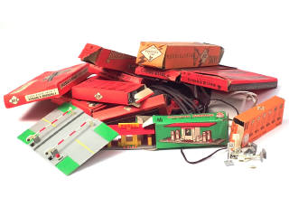 comprend notamment : indicateurs de vitesse, barrières de clôture, station service, transformateur, passage à niveau & différents rails - quelques manques