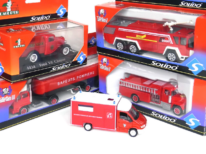 SOLIDO (FRANCE) Ensemble de 5 véhicules de pompiers rouge