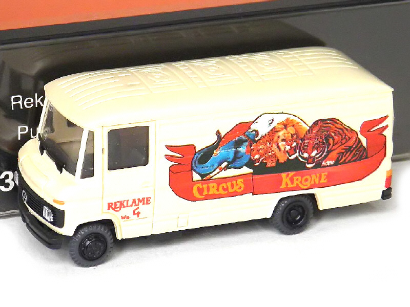 PREISER 'HO' (ALLEMAGNE) 21153 MERCEDEZ 508 Fourgon 'REKLAME CIRCUS KRONE' crème