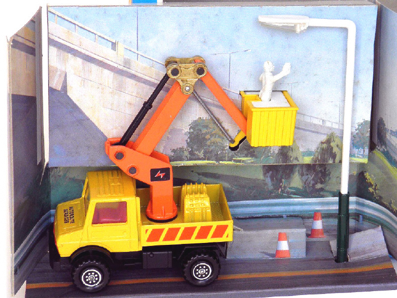 MATCHBOX - SUPERKINGS (GB) K-93 MERCEDES UNIMOG avec nacelle élévatrice 'AUTOROUTE SERVICES' jaune & orange