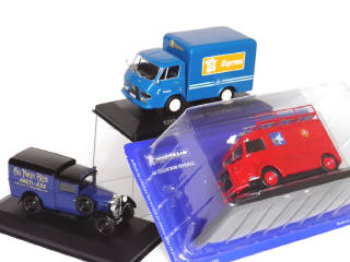 miniatures reproduisant les modèles : PEUGEOT 301, CITROEN 350N & CITROEN H 'MICHELIN' (série presse MICHELIN) - une boîte état 'b'