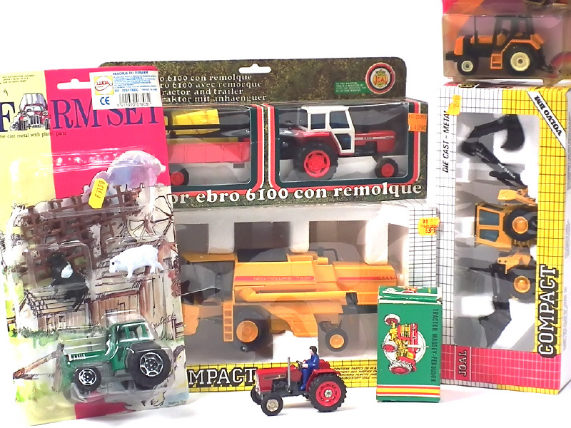 comprend notamment : NEW HOLLAND TX34 moissonneuse batteuse, EBRO 6100, MASSEY FERGUSON, LINDE & VOLVO BM pelle chargeuse - on y retrouve les marques : JOAL, SIKU & LUDA - 3 boîtes en état 'c'