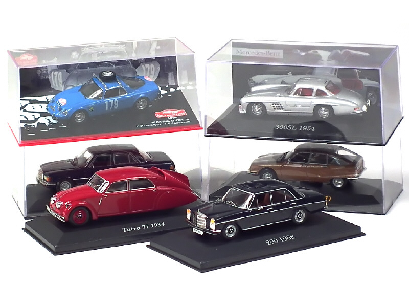 modèles vendus en kiosque - comprend : MATRA DJET V MONTE-CARLO 1966, MERCEDES 280 SE 1972, 300 SL 1954, 200 1968, CITROEN GS 1971 & TATRA 77 1934