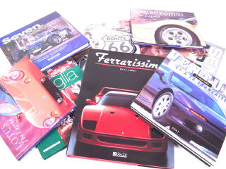 comprend : AYRTON SENNA, FERRARISSIME, ROUTE 66 (état 'a' sous film plastique jamais ouvert), SEVEN PASSION, VENTURI (écrits en français), MILLE MIGLIA, STYLE AUTO N°33 (état 'c, ouvrages en italien) & LAMBORGHINI & LOTUS (livres en anglais)