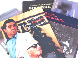 comprend : LA GRANDE ENCYCLOPEDIE DE LA FORMULE 1 tome 1, GENERATION V10 (en coffret cartonné), LES FERRARI 'livres écrits en français), MEMOIRS OF ENZO FERRARI 'S LIEUTENANT (en anglais) & IL MITICO GIRO DI SICILIA (en italien)