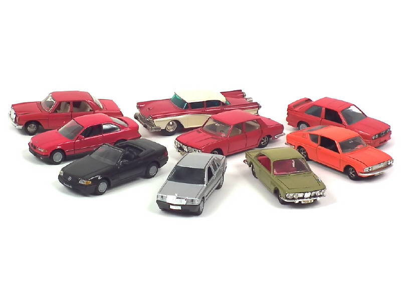 comprend : MERCEDES 190, 250, 300 SL, AUDI 100 coupé (état 'A-'), BMW 2800 CS, 2500, M3, 325 I & FORD (moteur à clef fonctionne) - on y retrouve les marques : SCHUCO, MARKLIN & GAMA