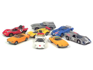 comprend : FERRARI DINO, CORVAIR BERTONE, FIAT 124 SPORT, SAMURAI (traces d'humidité sur le plancher), ABARTH 3000, MATRA SIMCA 660 (traces d'humidité sur une portière), OSI BISILURO (carrosserie légèrement encrassée) & CHEVRON GT - petites inscriptions sur certains planchers - décalques ajoutés