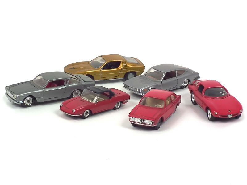 comprend : ALFA ROMEO GIULIA, GT (un dossier de siège à refixer), MONTREAL (état 'A-'), FIAT 850 BERTONE, 2300 S & DINO