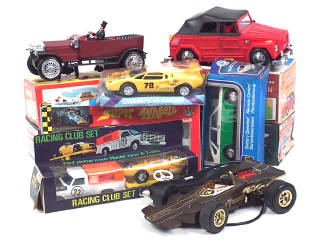 différentes échelles - miniatures reproduisant les modèles : VOLKSWAGEN (moteur à piles), Mc LAREN YARDLEY (moteur à piles), LOTUS JPS (moteur à piles), LOTUS téléguidée (sans boîte), ROLLS ROYCE (moteur à piles, tableau de bord cassé), VOLKSWAGEN PASSAT 'POLICE' téléguidée, LAMBORGHINI (moteur à friction), FORD, HONDA (moteur à friction fonctionne), BMW, FIAT & LANCIA - plusieurs véhicules non testés - on y retrouve les marques : HC, HOOVER ART, MIC, PLAYWELL, ROXY TOYS, DTC & LUCKY - boîtes & blisters déformés