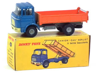 DINKY TOYS (FRANCE) 585 BERLIET GAK Benne basculante (version avec benne à stries fines) bleu & orange