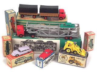 petites échelles - série 'MINI CARS' - miniatures reproduisant notamment les modèles : FORD, CITROEN, BISCUTER (pare-brise à recoller), SEAT, PEGASO (un petit élément manquant, quelques parties déformées) - petites déformations de quelques boîtes