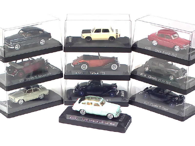 miniatures reproduisant les modèles : CITROEN (4 exemplaires différents), SIMCA (3 exemplaires différents dont un en tirage limitée), TALBOT (boîte en état 'c') & FORD (2 exemplaires différents dont un avec boîte en état 'c')