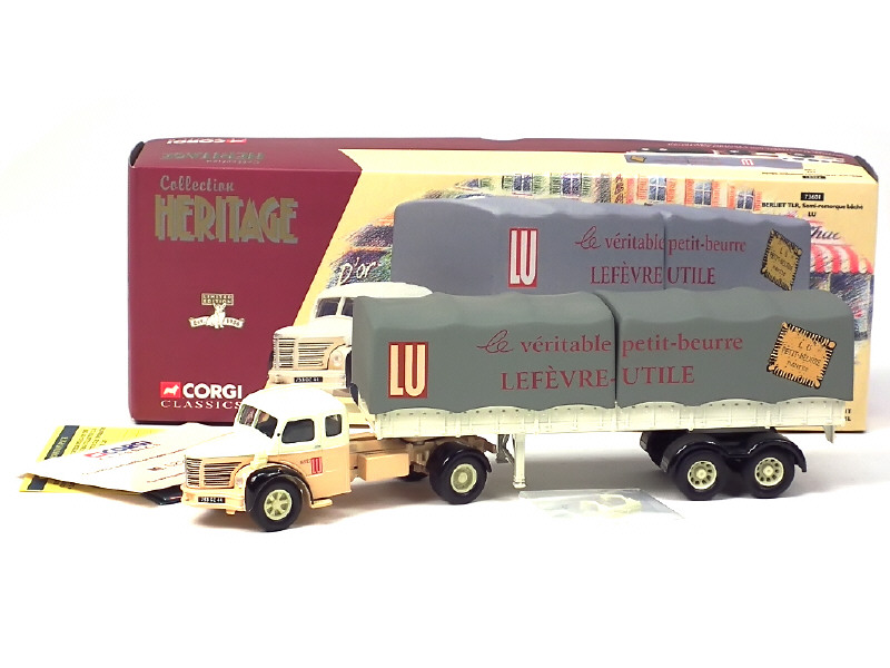 CORGI TOYS (GB) 73601 BERLIET TLR Semi-remorque bâché 'LU' blanc cassé, pêche & gris