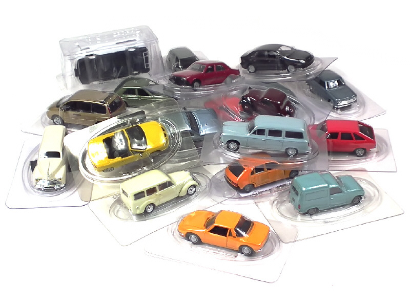 véhicules vendus en kiosque - miniatures reproduisant notamment les modèles : CITROEN, RENAULT, SIMCA & PEUGEOT