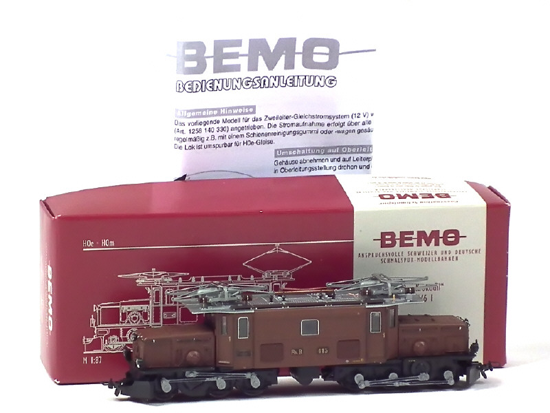 BEMO HOM (ALLEMAGNE) 1255 135 Motrice électrique 6/1 III CROCODILE 'RHB' marron, gris métal & noir
