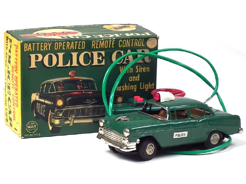 LINE MAR TOYS (JAPON) Voiture américaine 'POLICE' téléguidée en tôle peinte vert foncé