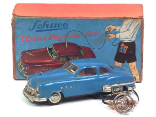 dimensions du coffret : 26,5 x 14,5 cm - non testé - contient : voiture & télécommande - manque quelques accessoires - certaines parties cassées - carrosserie légèrement encrassée - très légères fêlures sur le vitrage