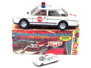 longueur : 30 cm - moteur à piles & gyrophare lumineux (à revoir) - on y joint une CITROEN GS ambulance en tôle lithographiée (état 'C' avec plancher terni)