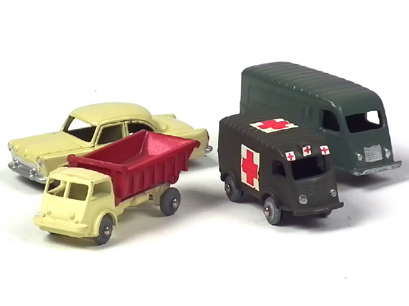 série MICRO MINIATURES - comprend : RENAULT 1000 kg ambulance, benne basculante & SIMCA ARIANE - on y joint : RENAULT 1000 kg en état 'A.-' de la marque GITANES