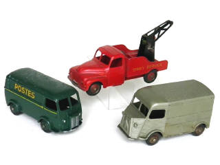 état de 'D' à 'E' - miniatures reproduisant les modèles : CITROEN U23 (manque le crochet), PEUGEOT D3A & CITROEN H
