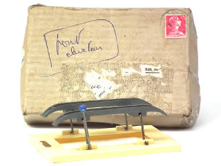 avec mentions 'DELESPAUL' en lettres dorées sur le socle - avec sa rare boîte d'envoi postal datée du 18 mai 1957 en état 'c' avec annotations sur le couvercle