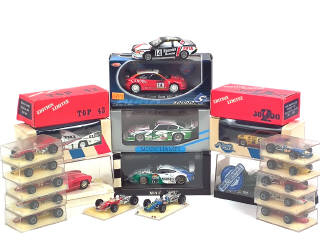états de 'A' à 'B' - miniatures reproduisant notamment les modèles : PORSCHE, CITROEN, JAGUAR, RENAULT, FIAT & MERCEDES - on y retrouve les marques : CHAMPION (FRANCE), SOLIDO, RECORD & MINICHAMPS - les boîtes sont en état de 'a' à 'c'