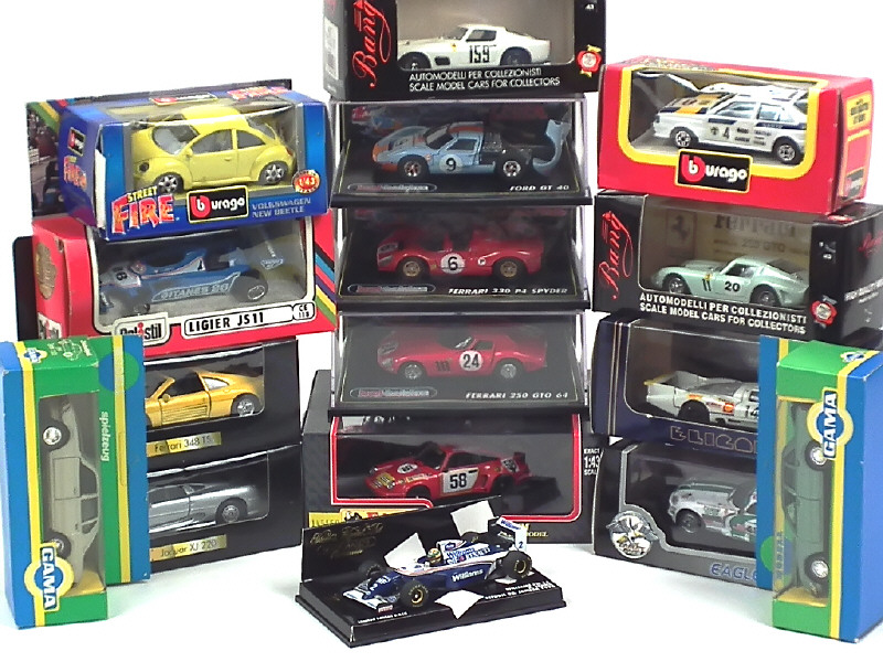 miniatures reproduisant notamment les modèles : DODGE, PORSCHE, BUGATTI, FORD, OPEL, BMW, VOLKSWAGEN & FERRARI - on y retrouve notamment les marques : EAGLE, JOUEF, GAMA, BBURAGO, POLISTIL, BANG, ELIGOR, MINICHAMPS & ONYX